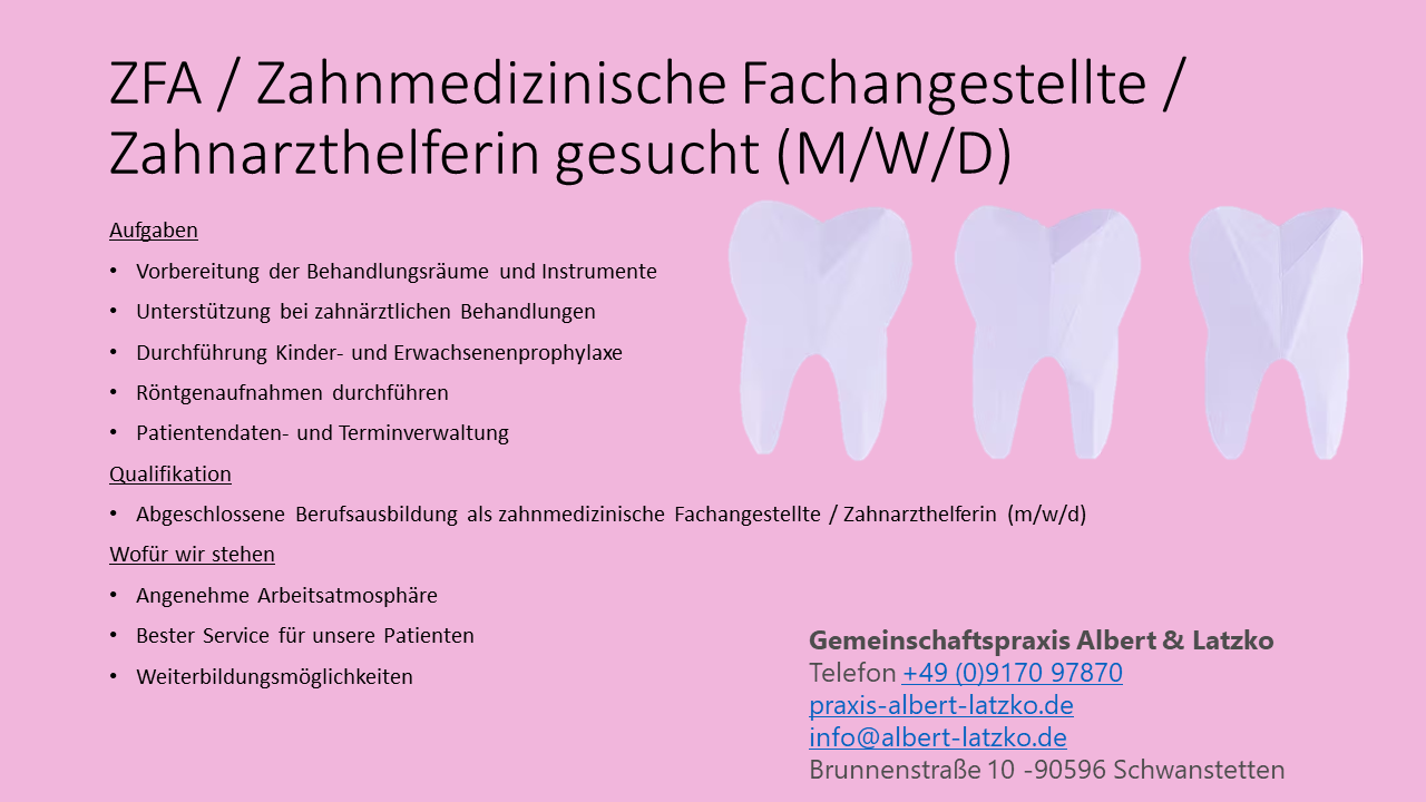 wir begrüßen Sie auf der Internetseite der zahnärztliche Gemeinschaftspraxis von Annett Albert und Antje Latzko.